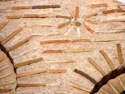 Такой полосатый декор оформления экстерьера часто дополнялся кладкой с утопленным рядом: на фасад выходили не все ряды кирпичей, а через один, и розовый слой цемянки получался в три раза толще слоя кирпича. Дополняли экстерьер сложно профилированные окна и ниши.