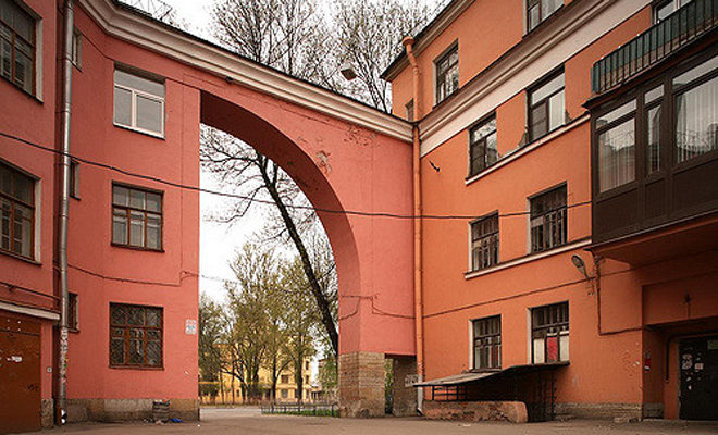 1927, дом для рабочих на Тракторной улице, Ленинград, СССР, Александр Гегелло. Фото с сайта: http://architecture-history.org/schools/CONSTRUCTIVISM.html