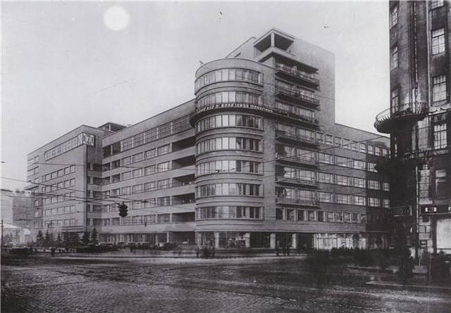 В Харькове массивный комплекс из нескольких зданий, известный как Здание Государственной промышленности (Госпром, 1926-28), был спроектирован архитектурной командой во главе с Сергеем Серафимовым (1878-39).